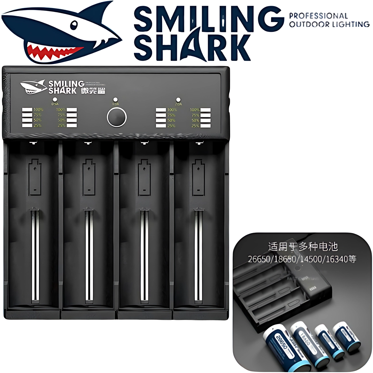 Smiling Shark Original Flashlight Battery Charger 18650 26650 14500 Universal Adapter Mobile Power Box 2A Flash Charge