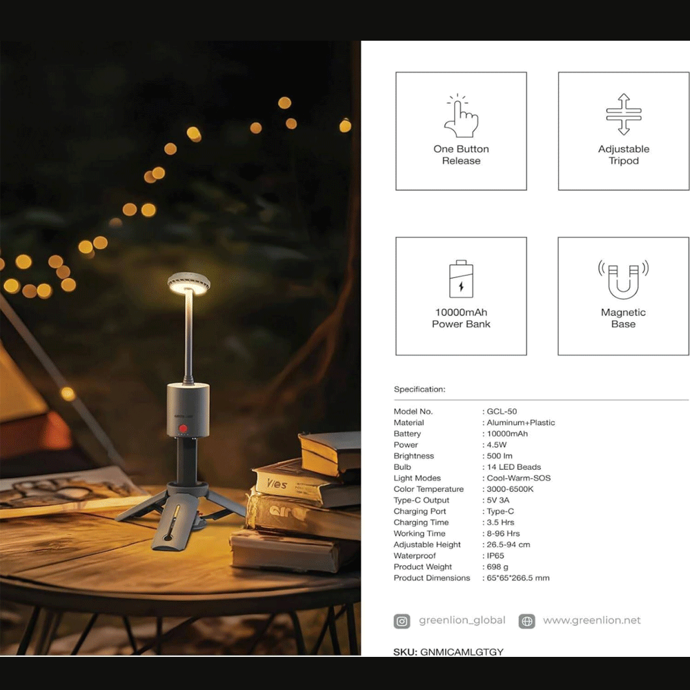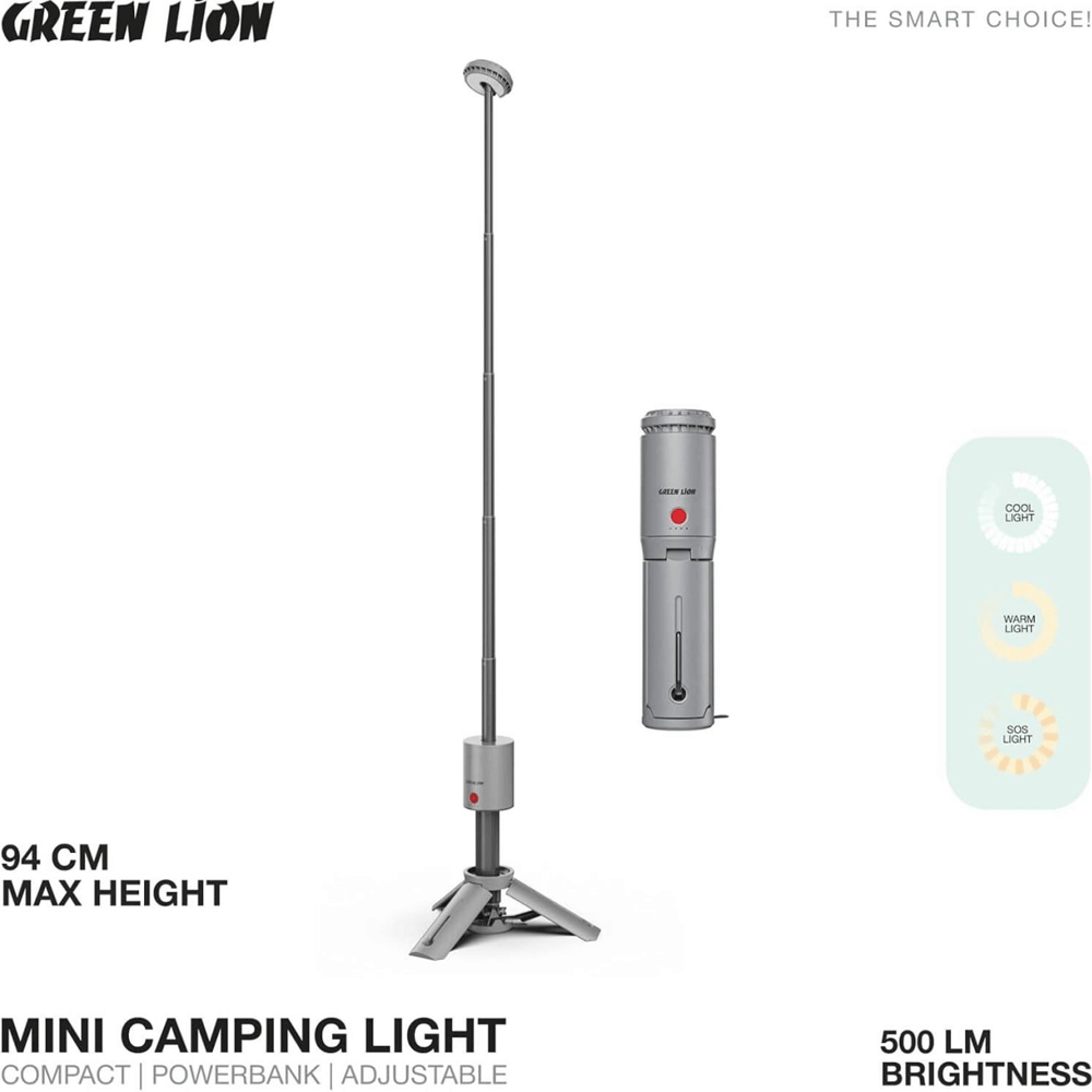 Green Lion GNMICAMLGTGY Mini Camping Light Compact | Powerbank | Adjustable