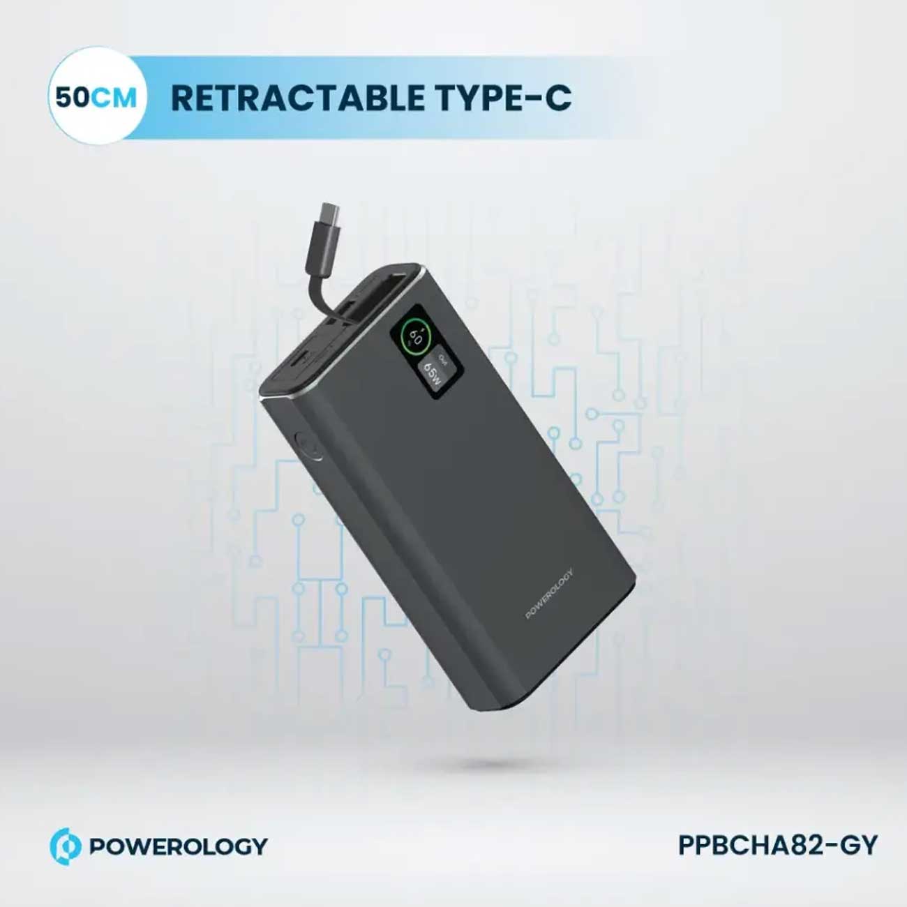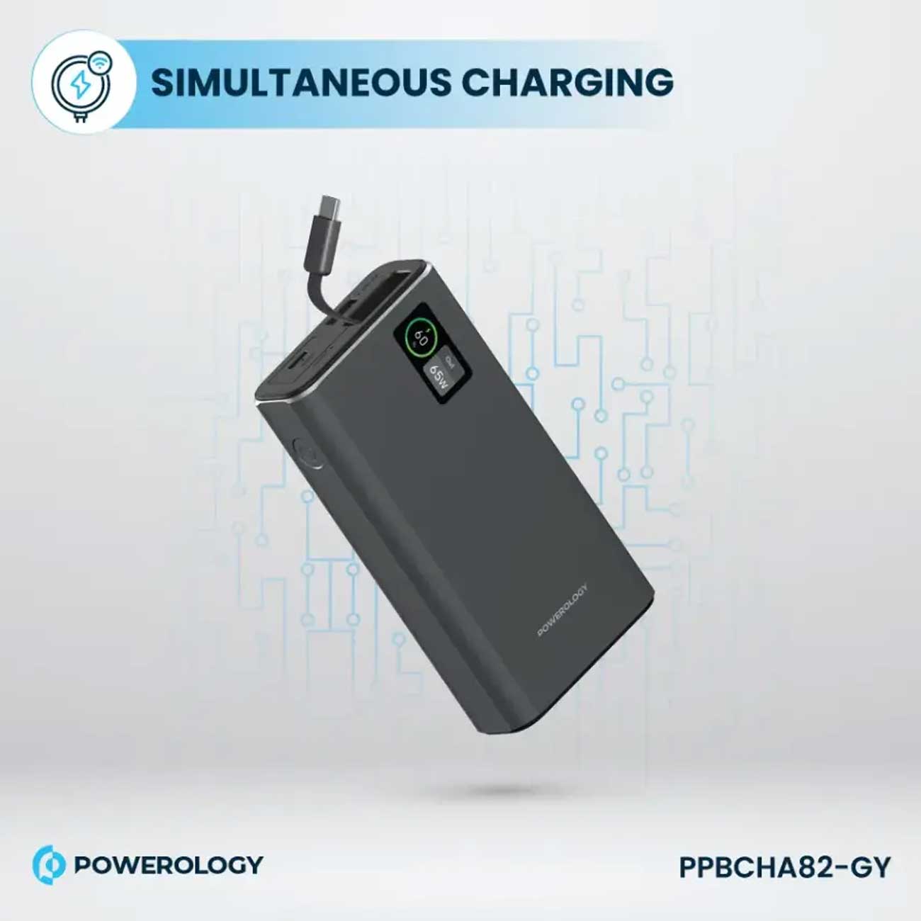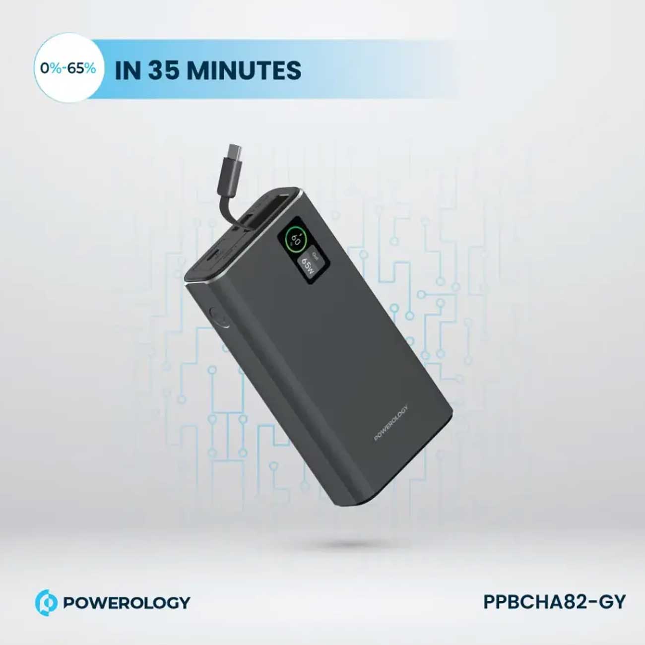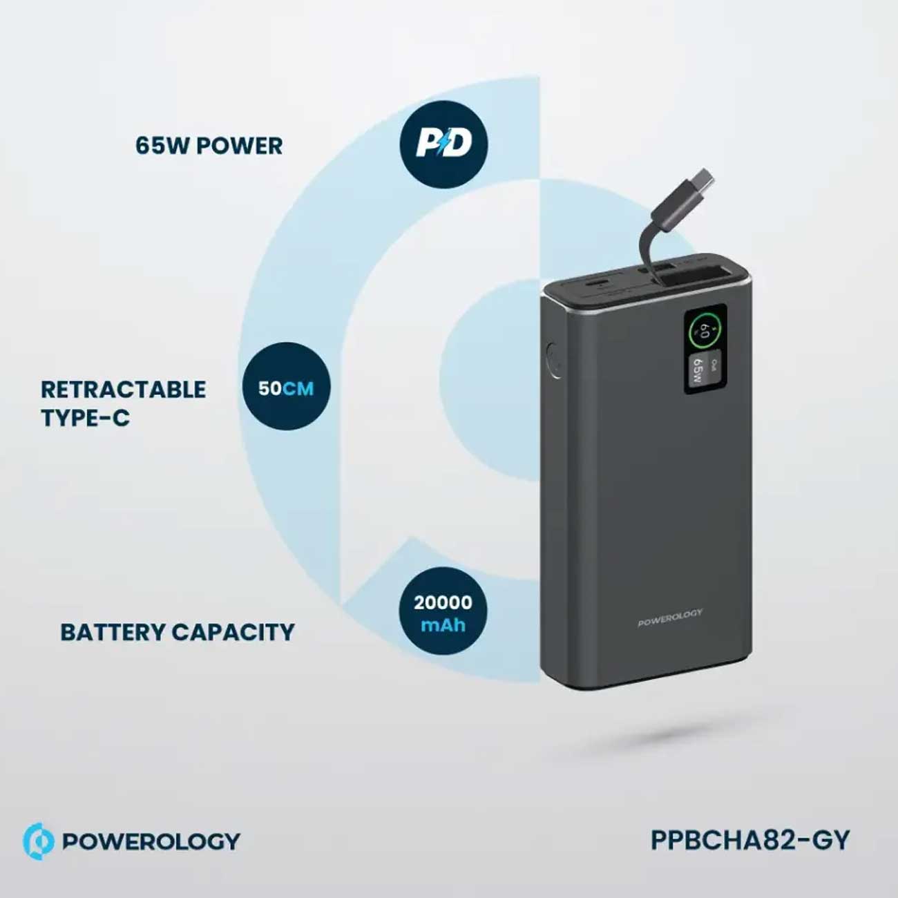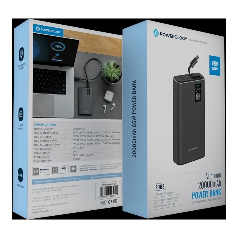 Powerology PPBCHA82-GY Aluminum 20000mAh Power Bank 65W