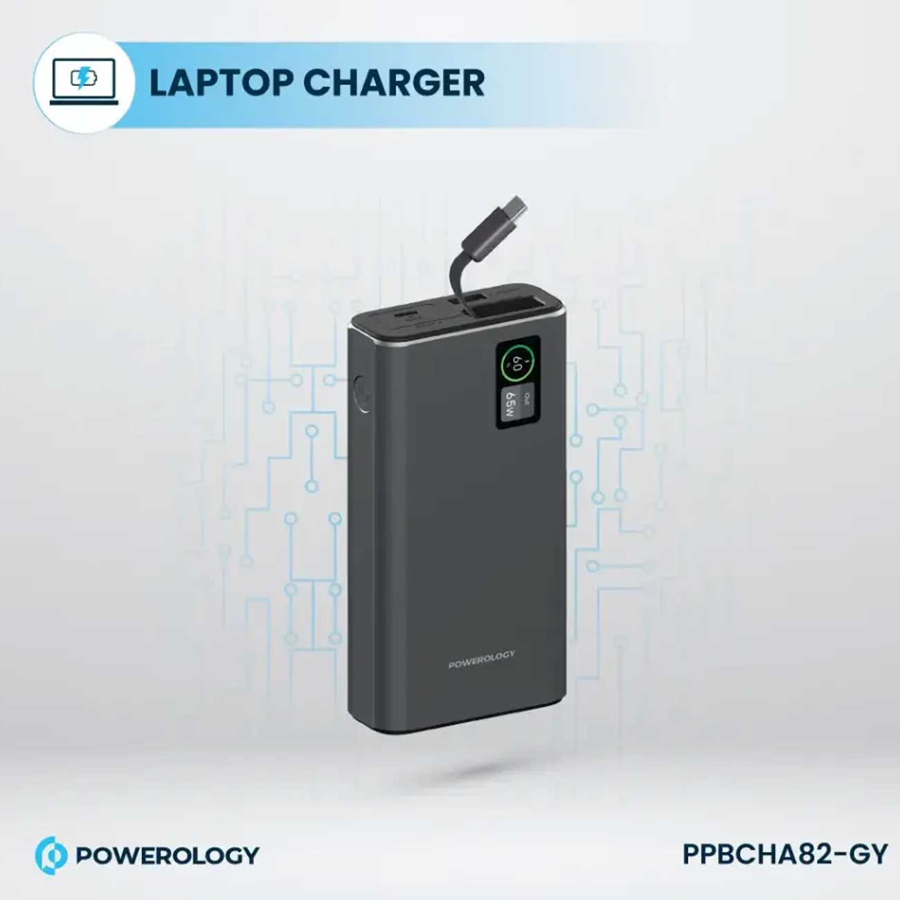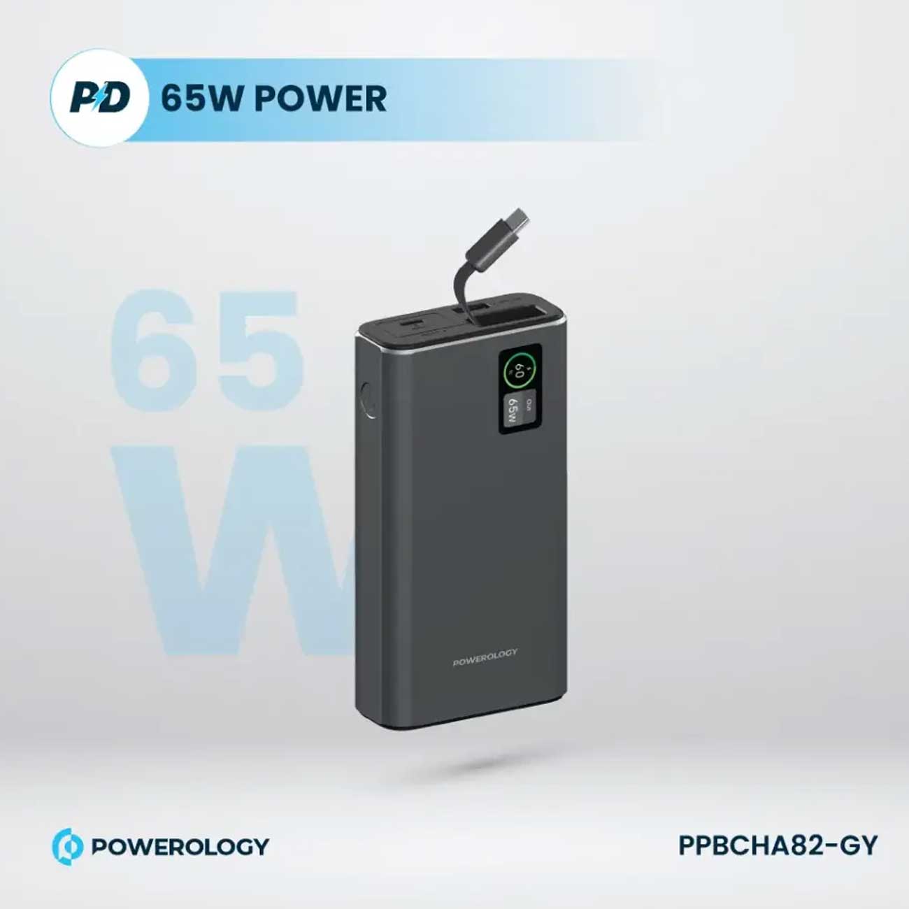 پاوربانک 20000 فست شارژ تایپسی 65 وات و یواسبی 30 وات پاورولوژی PPBCHA82-GY