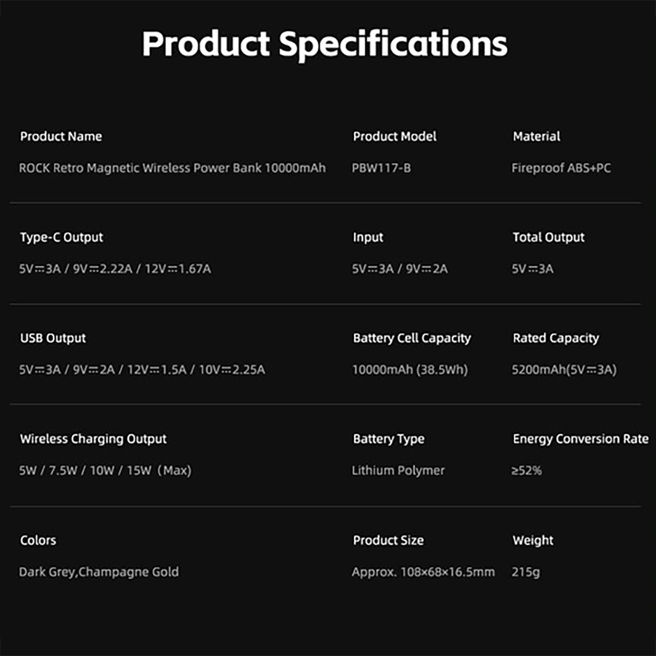 Rock PBW117-B PD20W 10000mAh Retro Power Bank