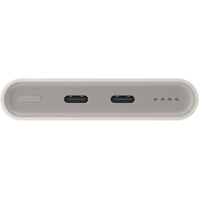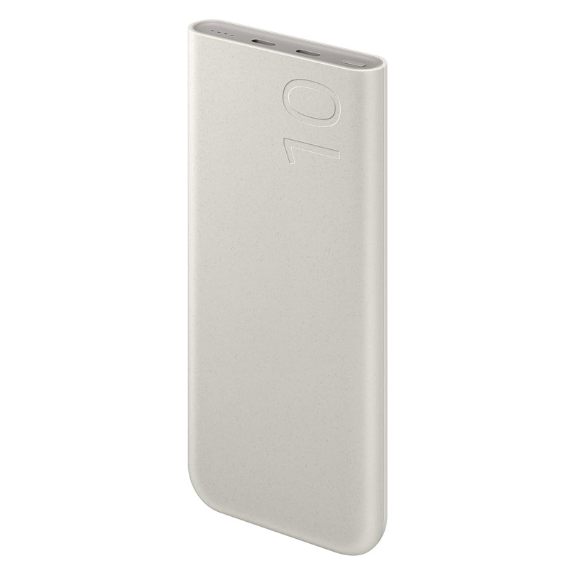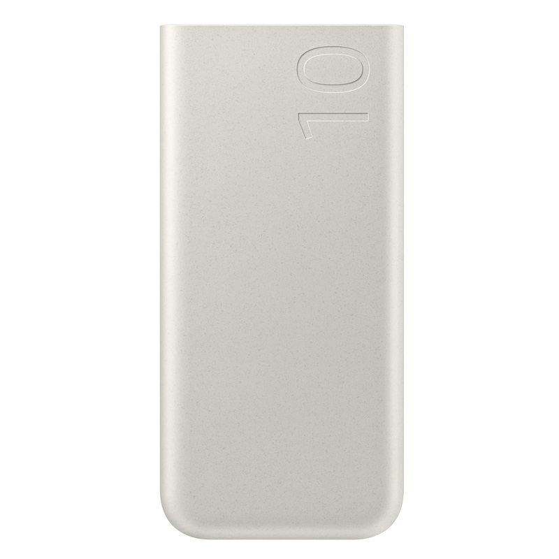 Samsung EB-U2510XUEGEU با قطر 16 میلی متر و وزن 222 گرم یکی از باریکترین ها در نوع خود است. بدنه بیرونی آن به رنگی بژ خاص و از جنس مواد بازیافتی دارای گواهی UL ساخته شده است که آن را به انتخابی سازگار با محیط زیست بدل نموده. لبه ها در قسمت پایین گرد و در جلوی دستگاه به صورت تخت طراحی شده اند که میزبان دکمه پاور، نمایشگر ال ای دی چهارگانه میزان شارژ و 2 درگاه تایپ سی وجود دارد که می توانید از این درگاه برای شارژ سایر گجت ها با توان خروجی 25 وات و یا شارژ مجدد پاوربانک استفاده نمایید. همچنین یک صفحه برای شارژ وایرلس 7.5 وات در قسمت بالای آن در نظر گرفته شده.