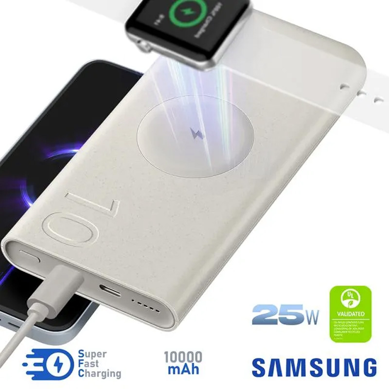 پاوربانک وایرلس Samsung EB-U2510XUEGEU به لطف پشتیبانی از فناوری شارژ سریع PD و فناوری شارژ وایرلس QI شما را قادر می سازد طیف وسیعی از گوشی ها را به صورت مغناطیسی با سرعت 7.5 وات در حالت وایرلس و از طریق کابل با توان 25 وات شارژ کنید. شما حتی قادرید گوشی آیفون 8 و بالاتر خود را به راحتی با این پاوربانک بی سیم شارژ کنید.