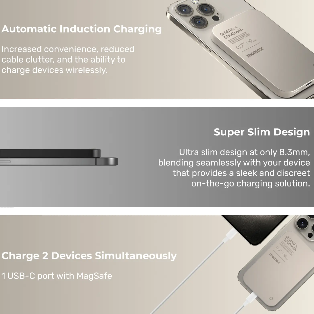 پاور بانک وایرلس مگنتی 15 وات 5000 مومکس Q.Mag X