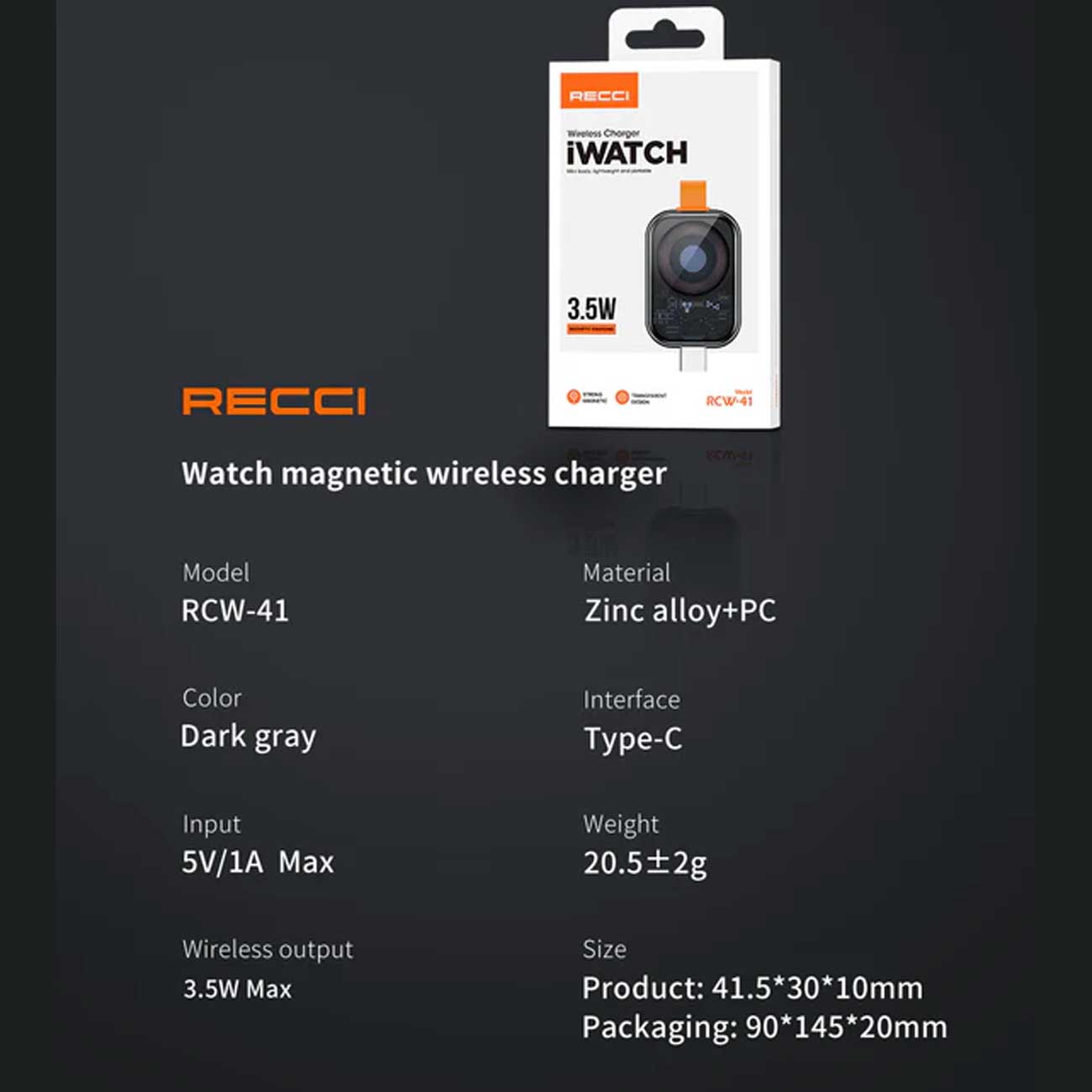 Recci RCW-41 Wireless Type C Apple Watch Charger 3.5W