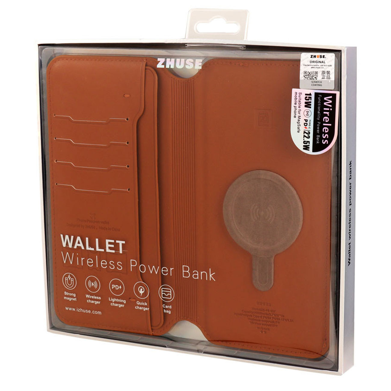 پاوربانک وایرلس 15 وات 10000 و کیف پول چرمی ژوس ZS-PB-037