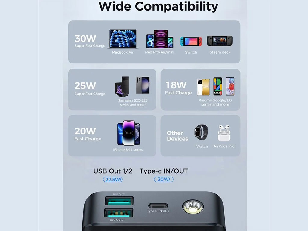 | قابلیتهای ویژه | دارای چراغ قوه,دارای فناوریهای شارژ سریع PD 3.0, QC 3.0, PPS, SCP |