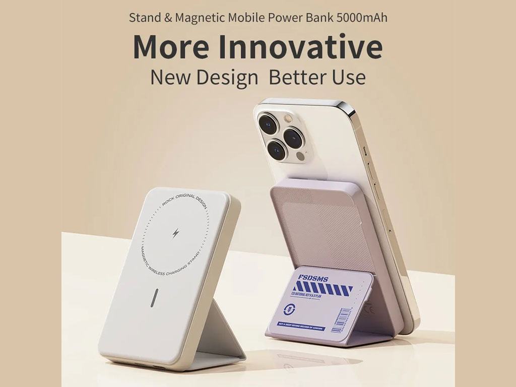 پاوربانک 5000 و شارژر بی سیم 15 وات راک Rock P83 Wireless Charging Power Bank
