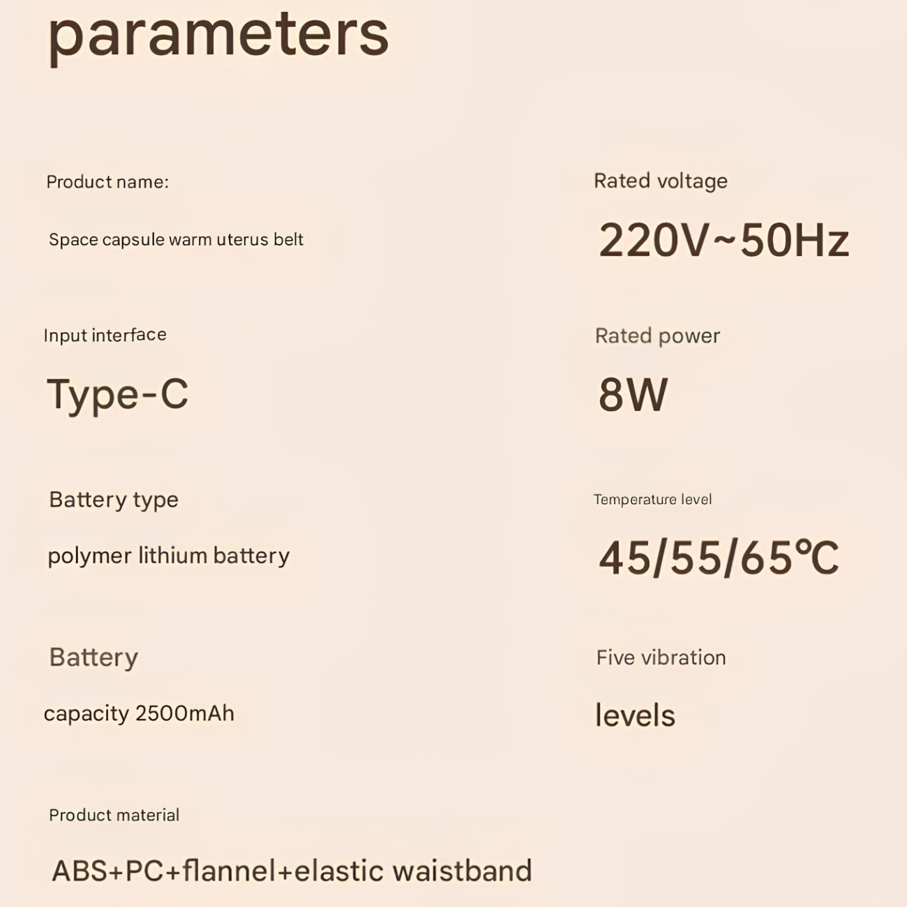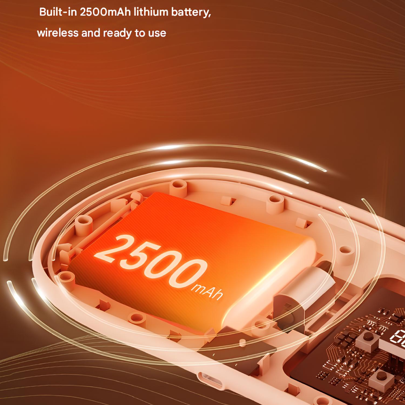ماساژور گرم کننده کمر، رحم و شکم Qualitel N5 دارای باتری قدرتمند با ظرفیت 2500 میلیآمپر است که امکان استفاده بیسیم و طولانی را فراهم میسازد.