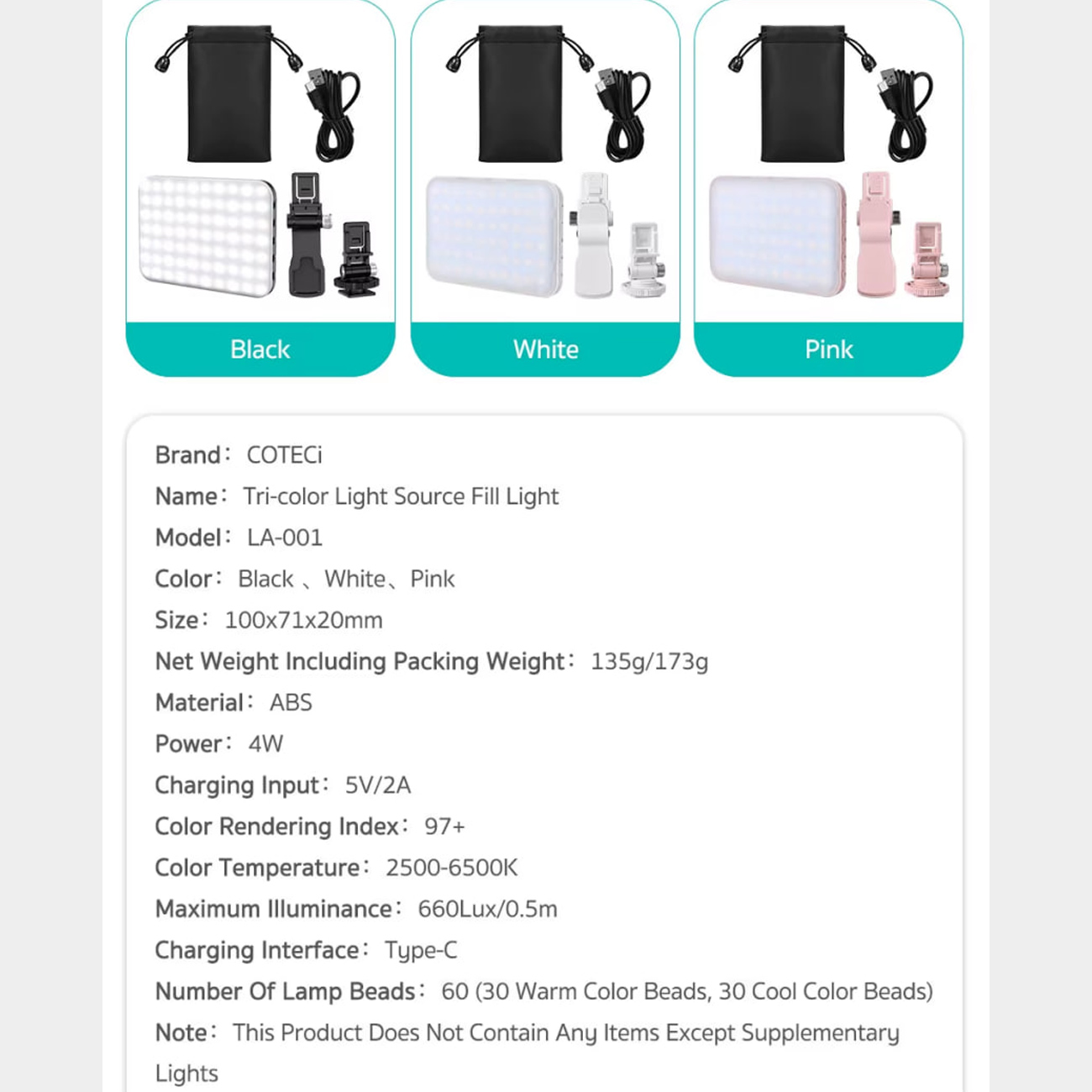 COTECi LA-001 Tri-Color Light Source Fill Light