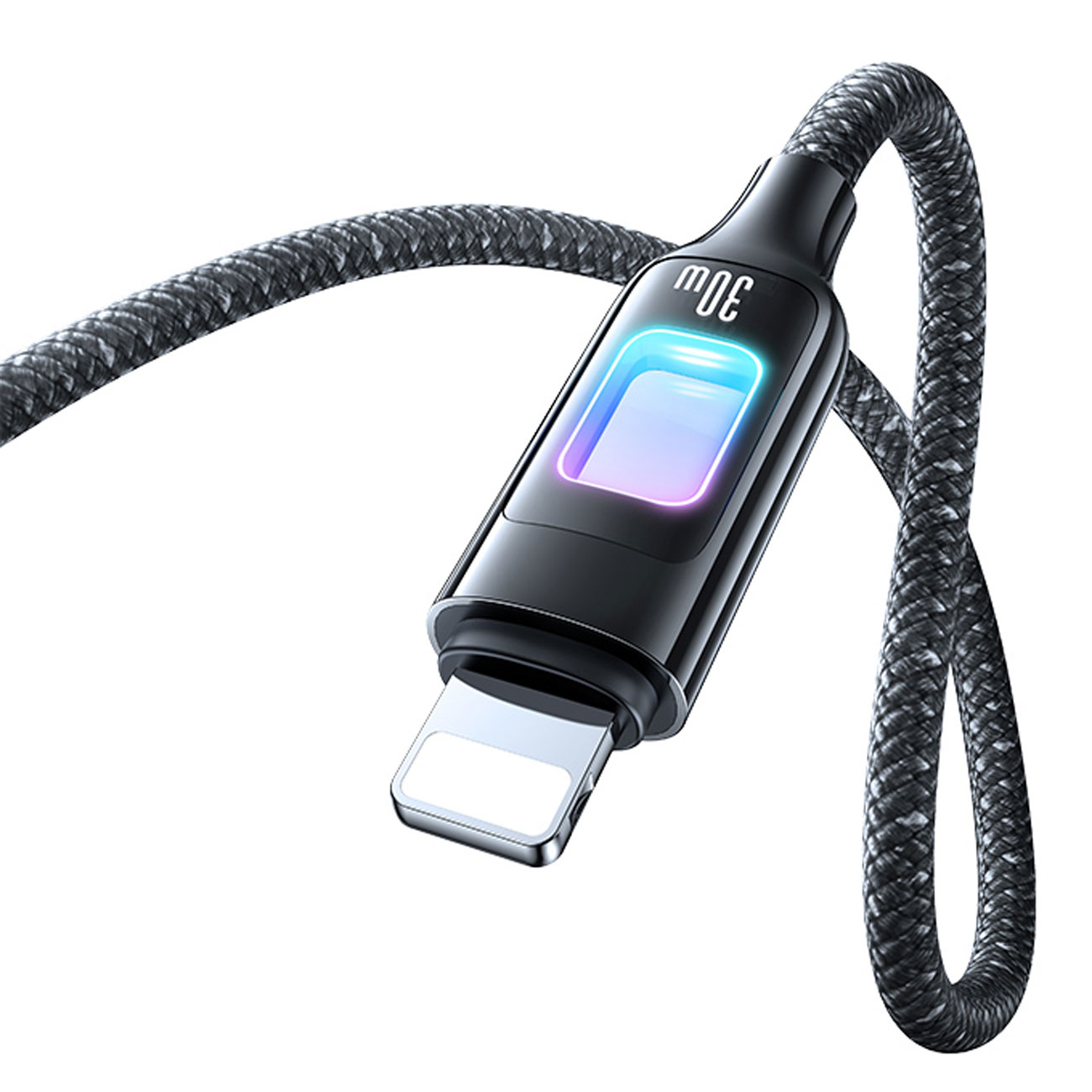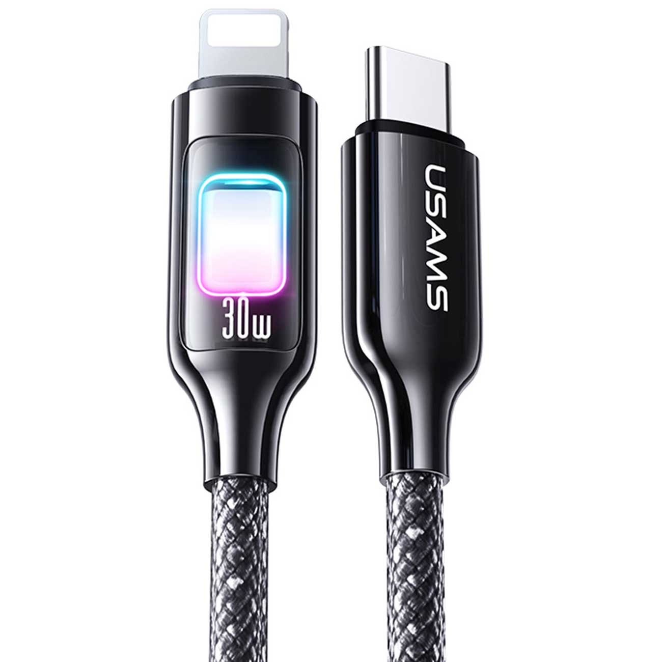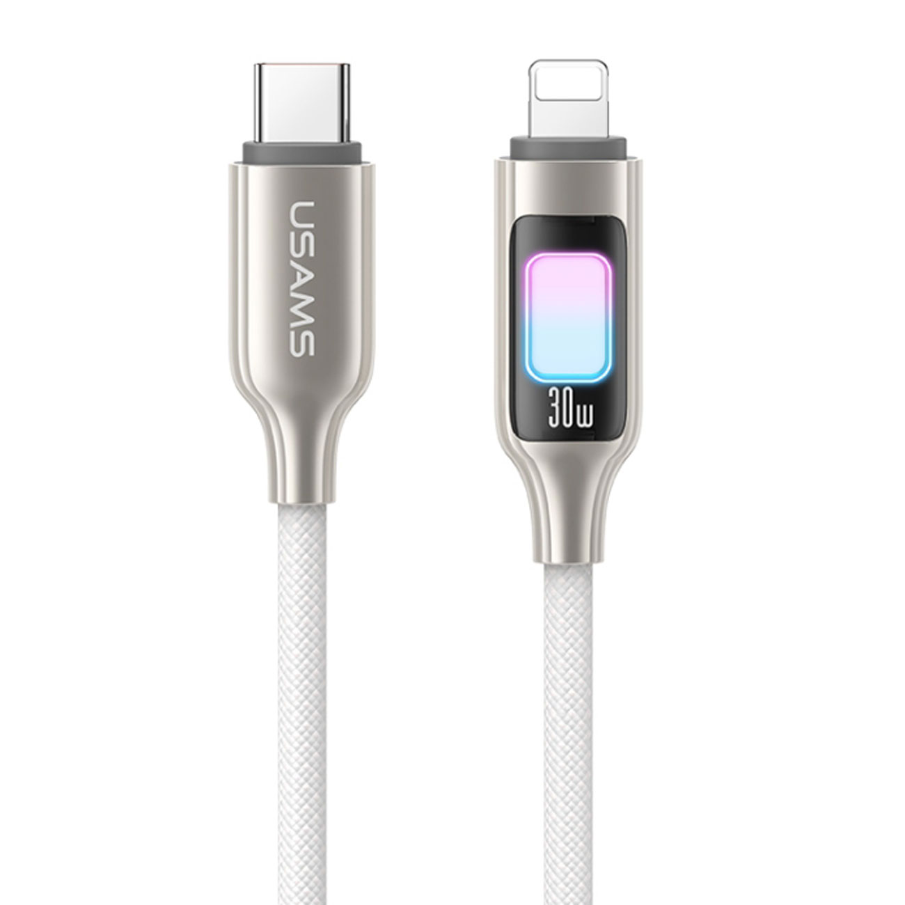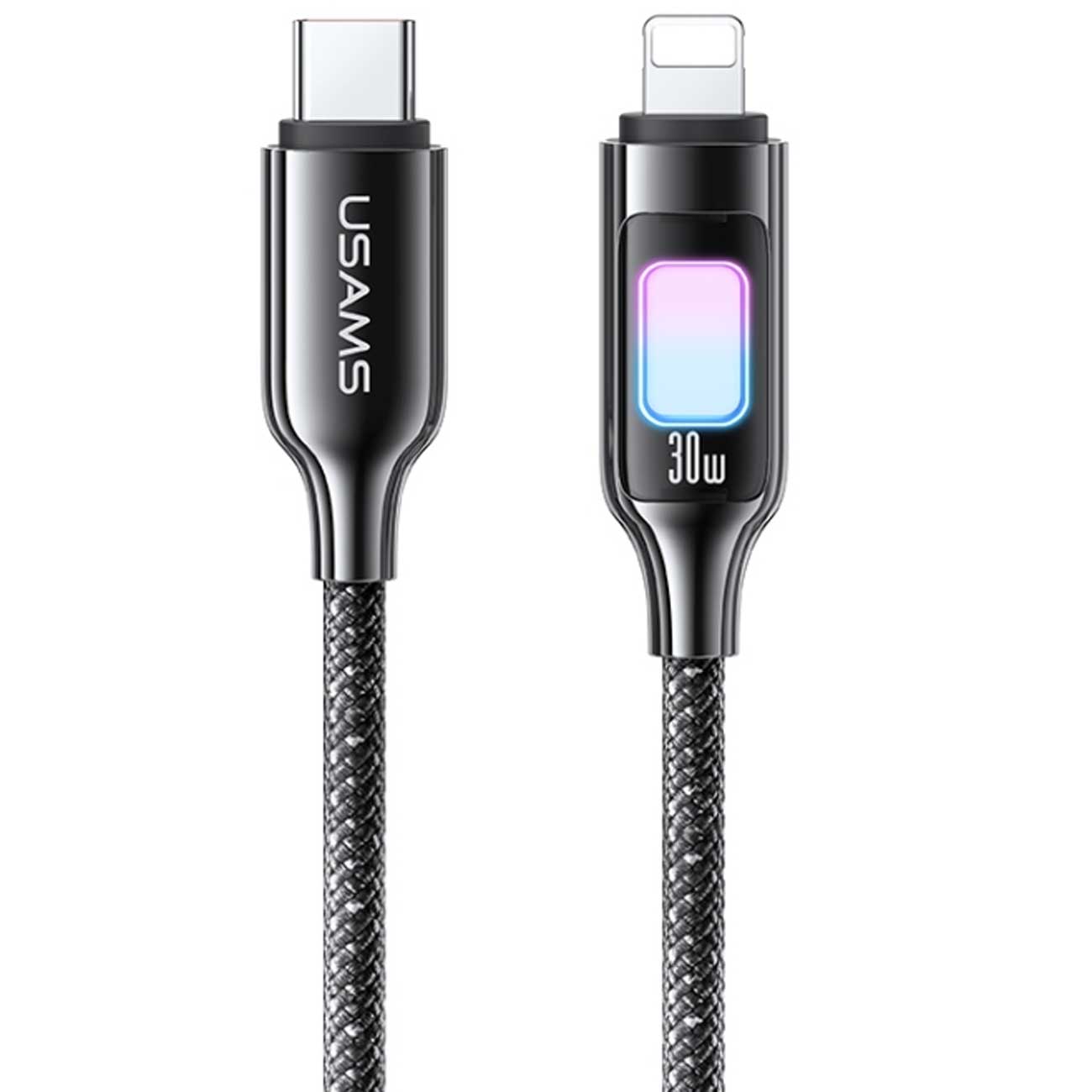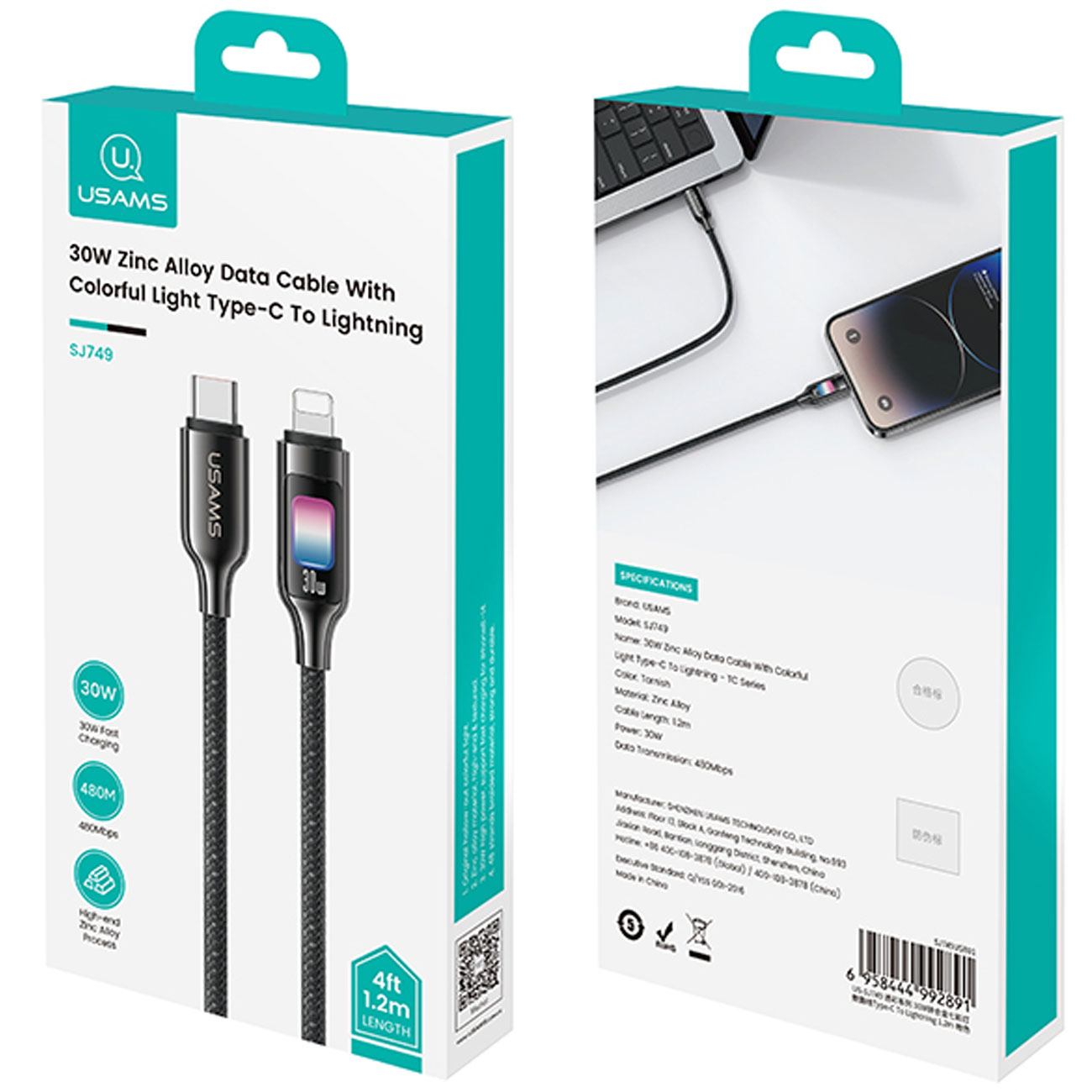 USAMS SJ749 30W Type-C / USB-C to 8 Pin Zinc Alloy Data Cable with Colorful Light 1.2m