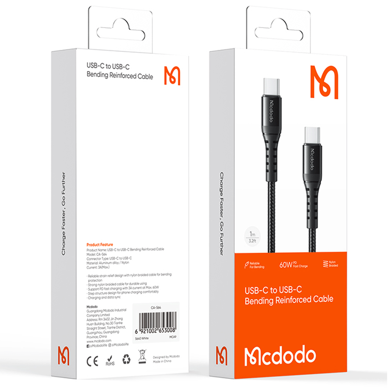 کابل شارژ سریع دو سر تایپ سی 60 وات 20 سانتی متر مک دودو CA-5640