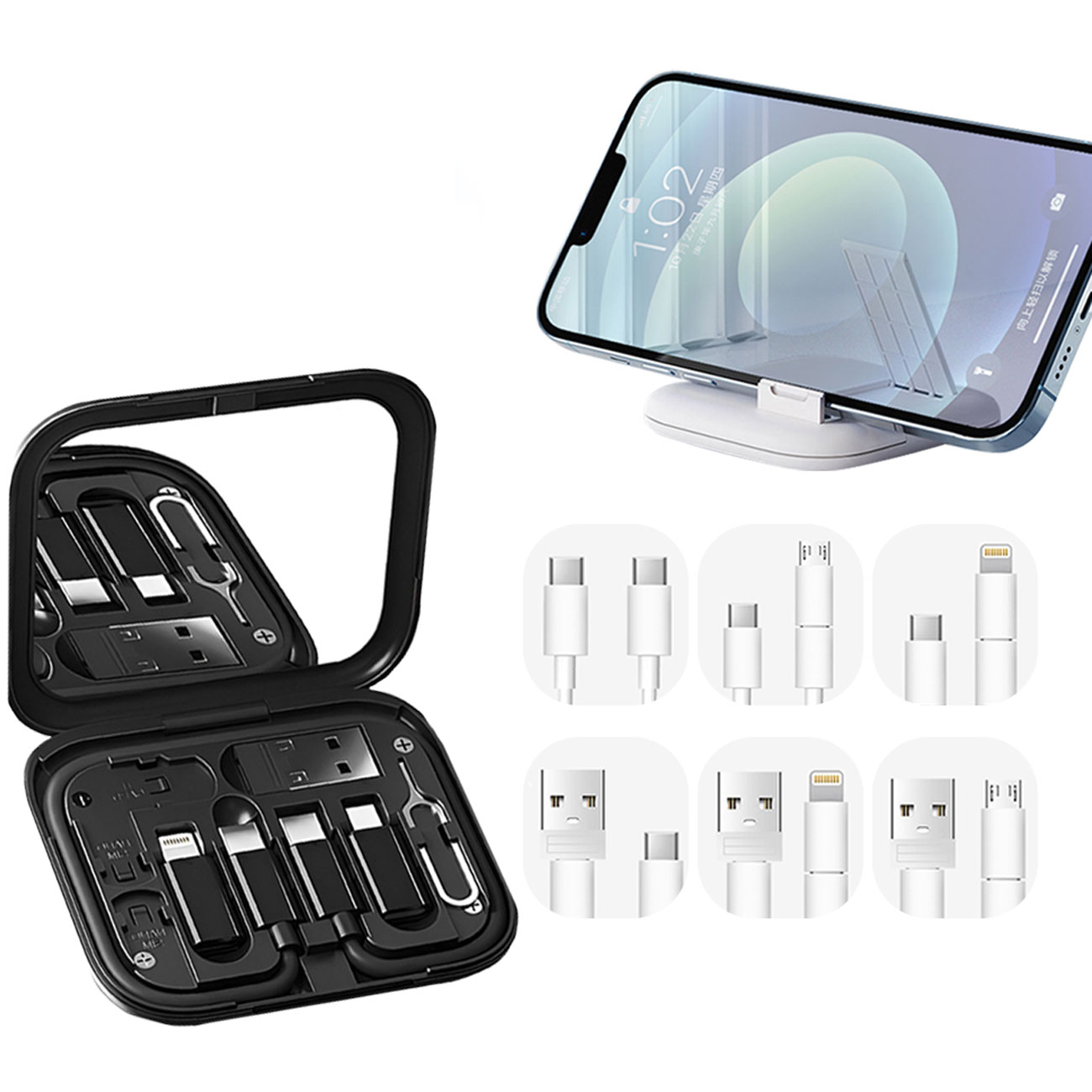 Coteetci Travel Version 8-in-1 Data Cable Storage Box 87702-BK 87702-WH