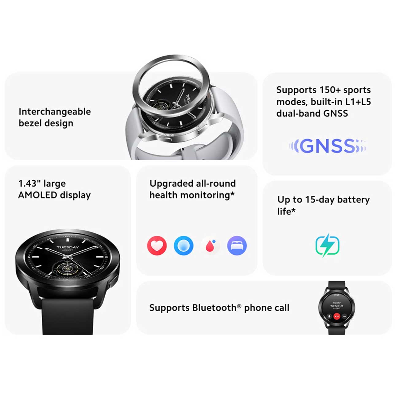 | ویژگیهای ایمنی | تماس اضطراری، تماس پس از سقوط، کارت اضطراری پزشکی |