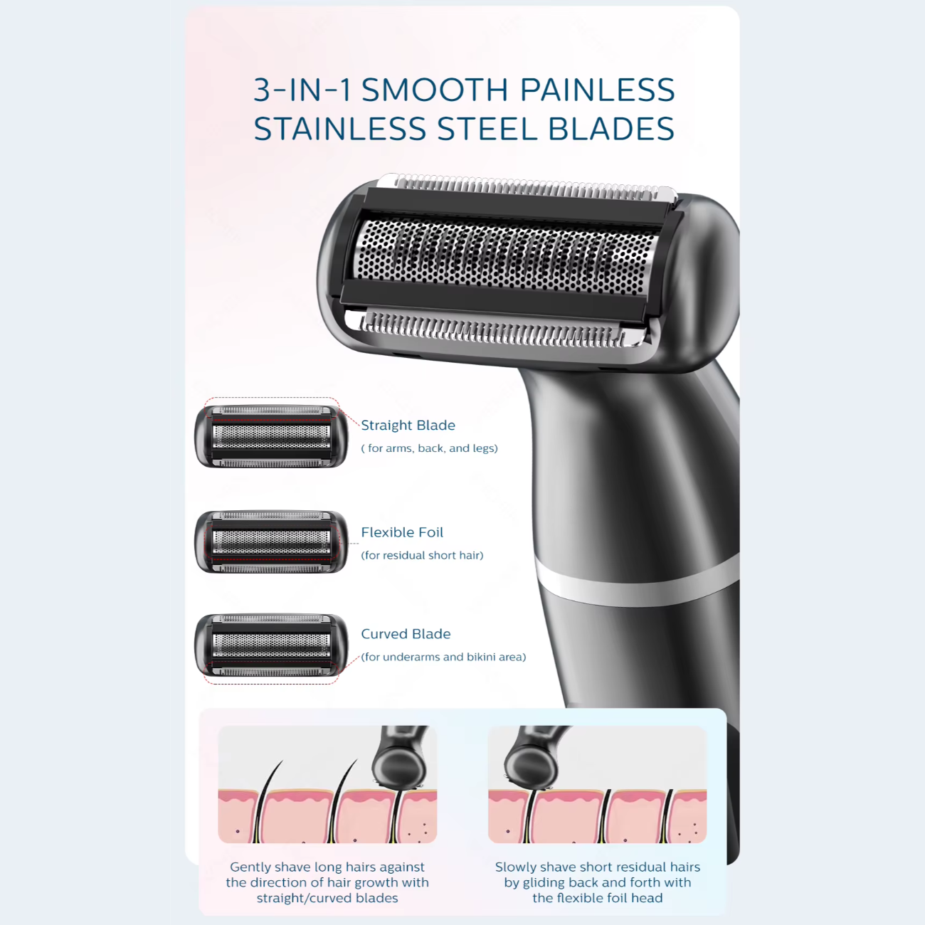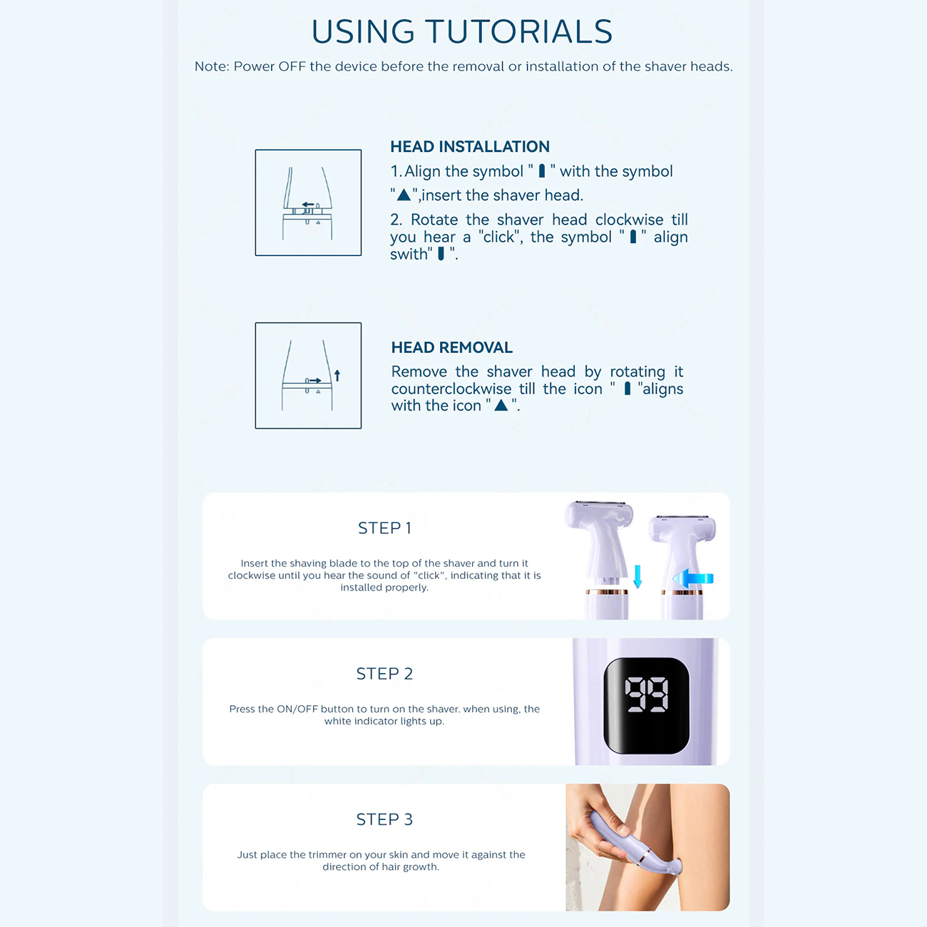 | کاربردها | اصلاح موهای بدن (پا، دست، زیر بغل، ناحیه بیکینی و سایر نقاط حساس بدن) |