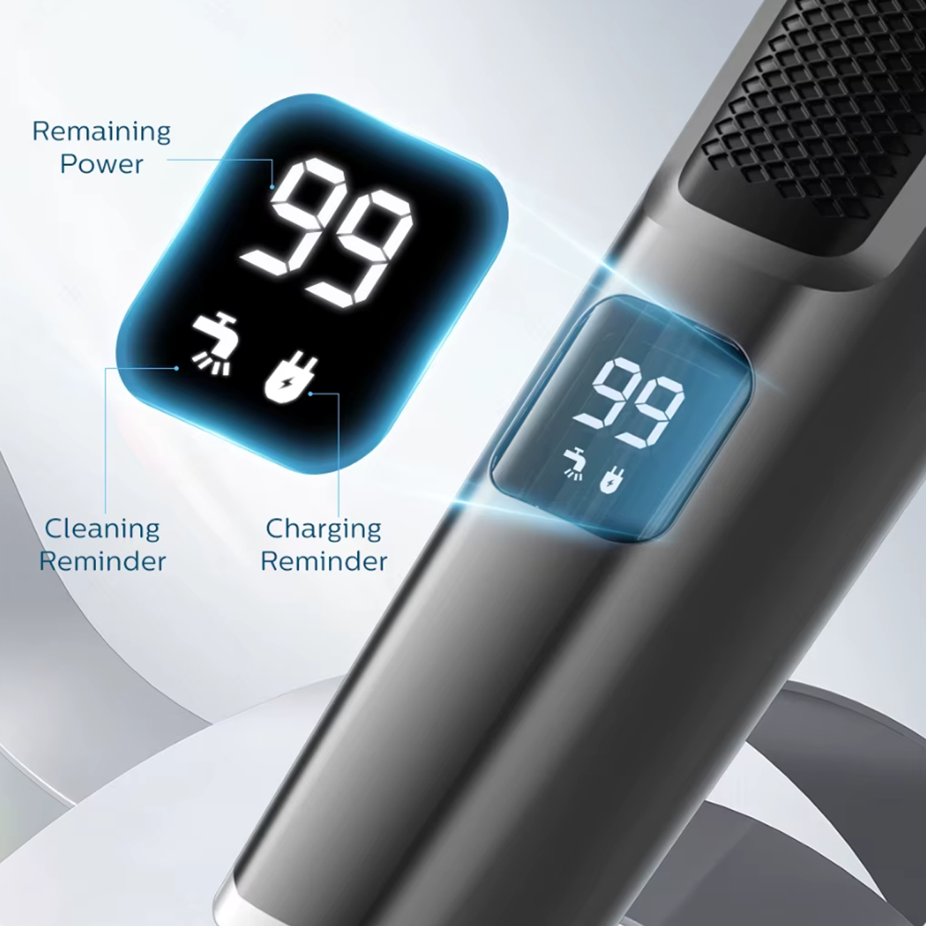 نمایشگر دیجیتال LED روی بدنهی دستگاه اصلاح بدن ضدآب بانوان Enchen A1 میزان شارژ باقیماندهی باتری و وضعیت شارژ دستگاه را نمایش میدهد. همچنین در صورت نیاز به تمیزکاری تیغه، آلارم مخصوصی فعال میشود تا کاربر به نگهداری صحیح از دستگاه توجه کند. این ویژگی باعث میشود همیشه از وضعیت عملکرد و آمادگی دستگاه آگاه باشید و هیچگاه ناگهانی خاموش نشود.