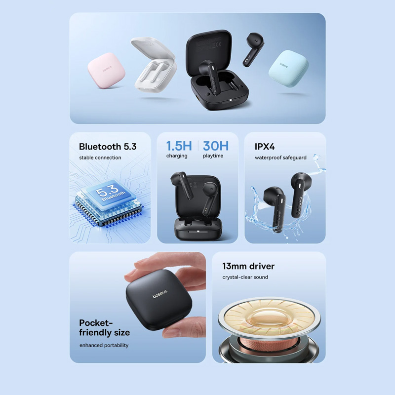 بدون شک محصولات برند Baseus یکی از برجسته ترینها در نوع خود در دنیای کلاهای دیجیتال هستند. هندزفری بلوتوثی Baseus Bowie E16 نیز یکی از آن محصولات محصوب می شود که به شما این امکان را می دهد که از صدای واضح، با جزئیات فراوان و باس قدرتمند لذت ببرید. بلوتوث 5.3 وظیفه اتصال مطمئن و سریع با تاخیر فوق العاده کم را عهده دار است. زمان کار بادزها همراه با کیس شارژ تا 30 ساعت می رسد و استاندارد ضد آب آن را برای استفاده در فضای باز مناسب می گرداند.