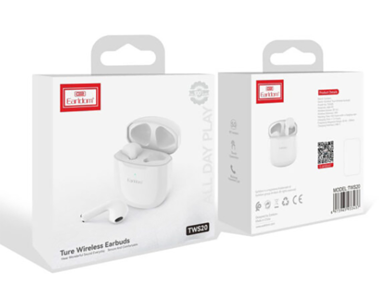 هندزفری بلوتوث ارلدام Earldom TWS20 Earpods Bluetooth Handsfree نمونهای باکیفیت از هدفونهای بلوتوثی است که سبک بوده و استفاده طولانی مدت از آن شما را آزار نمیدهد. با طراحی کوچک جمع و جور، از کنترل لمسی پشتیبانی میکند.