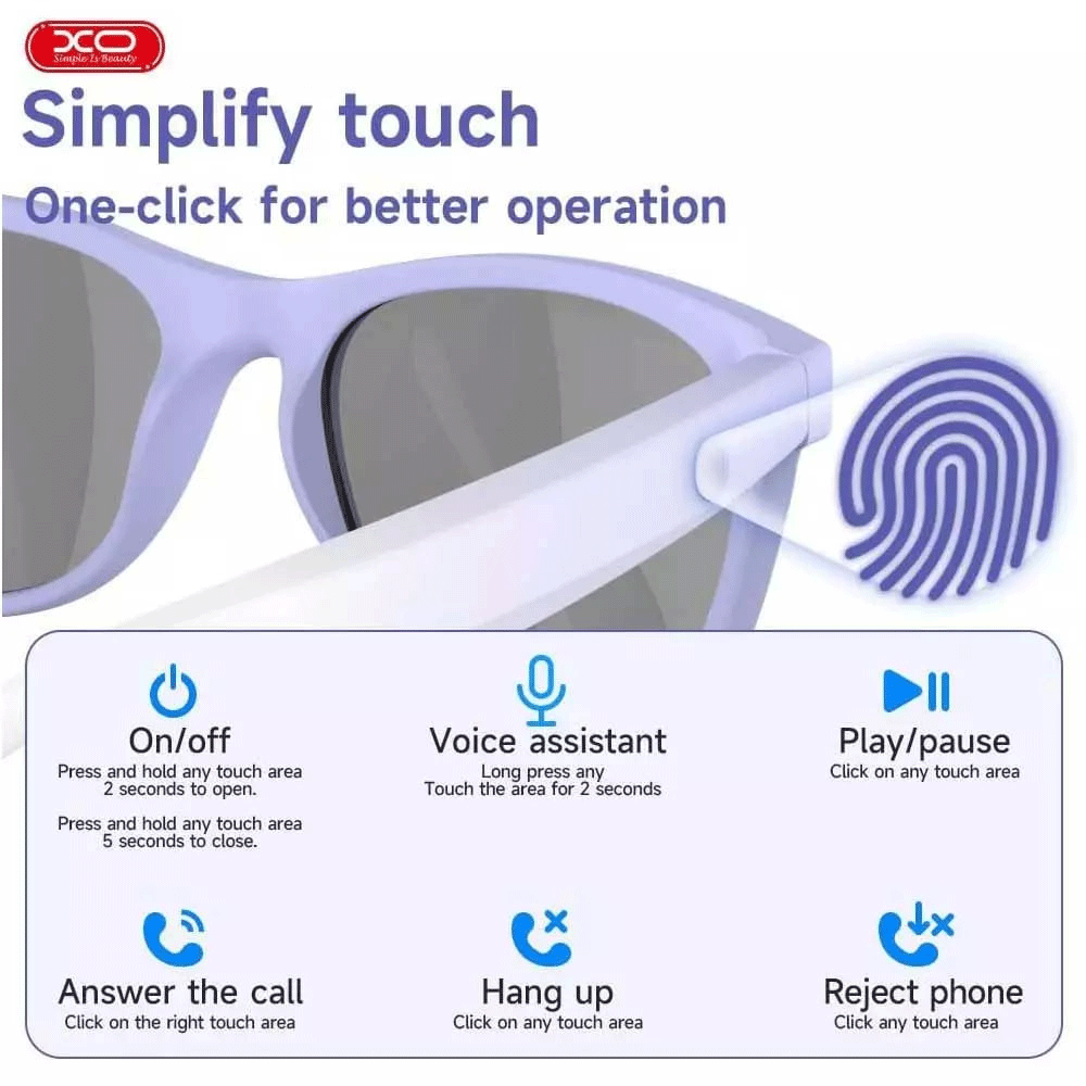 فریم پلاستیکی سبک و ارگونومیک به گونهای طراحی شده که استفاده طولانیمدت را بدون احساس خستگی ممکن میسازد. طراحی شیک عینک هوشمند ایکس او باعث میشود در هر موقعیتی از جمله پیادهروی، رانندگی یا تفریحات فضای باز، ظاهر شما جذاب و متفاوت باشد. مقاومت در برابر آب با استاندارد IPX4 نیز به شما اجازه میدهد بدون نگرانی از باران سبک یا تعریق، از آن استفاده کنید.