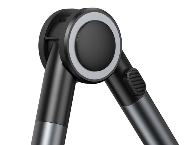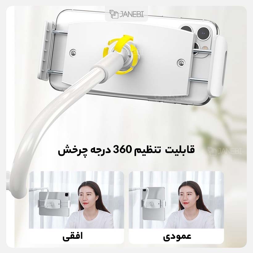در پشت دهانه کشویی پایه نیز یک قسمت توپی شکل وجود دارد و زاویه چرخش 360 درجه امکان چرخاندن گوشی به هر سمت را برای کاربران فراهم میکند.
