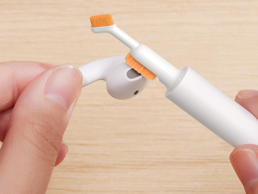 برس بزرگ برای پاک کردن گردوغبار از بخشهایی مانند بلندگوی هندزفری و برس کوچک هم برای تمیز کردن لکههای سرسخت از شکافها.