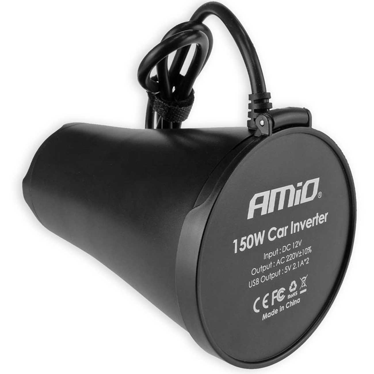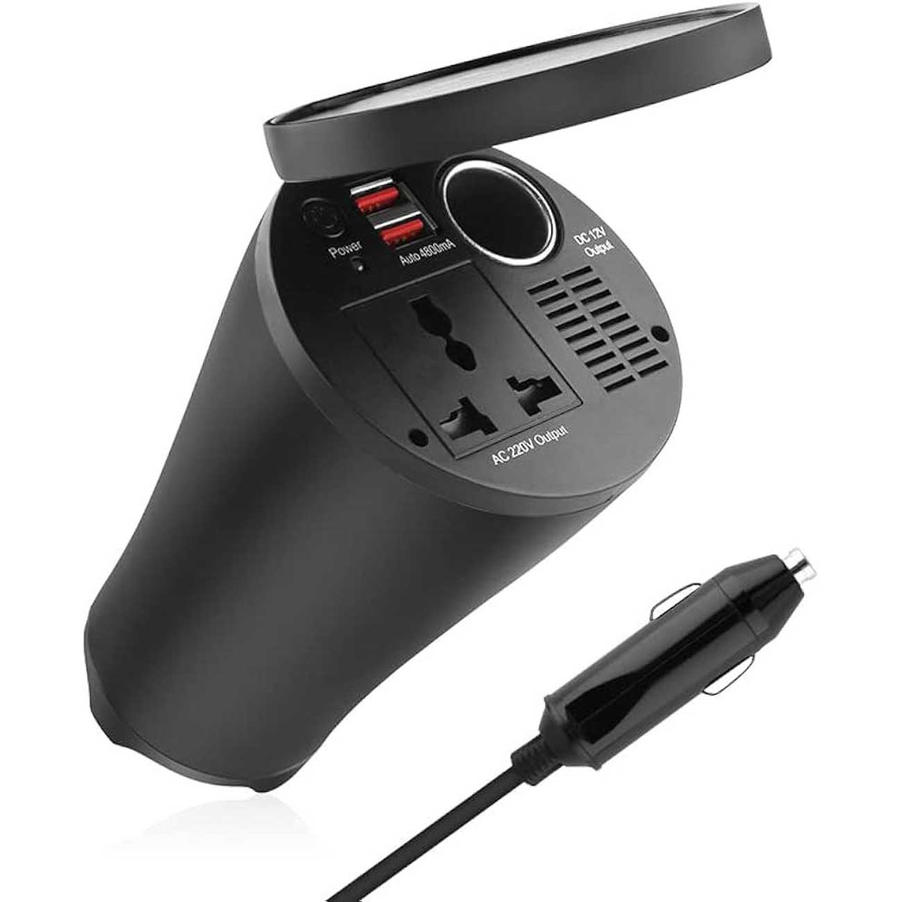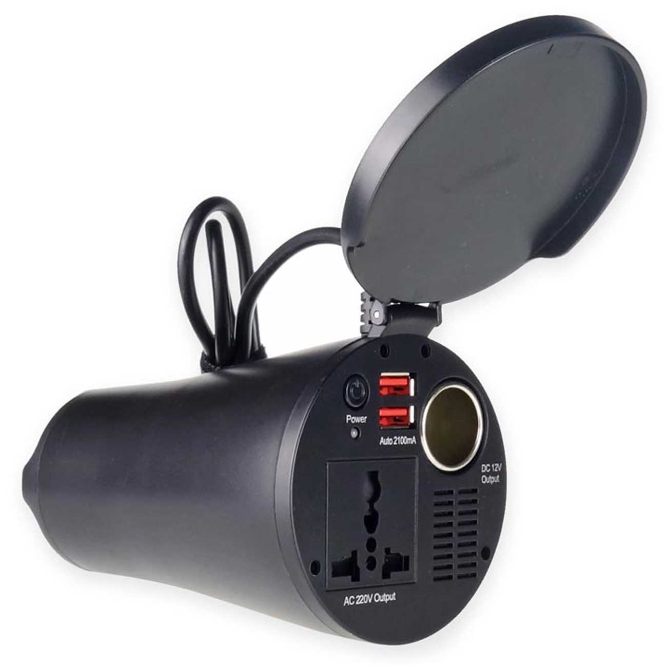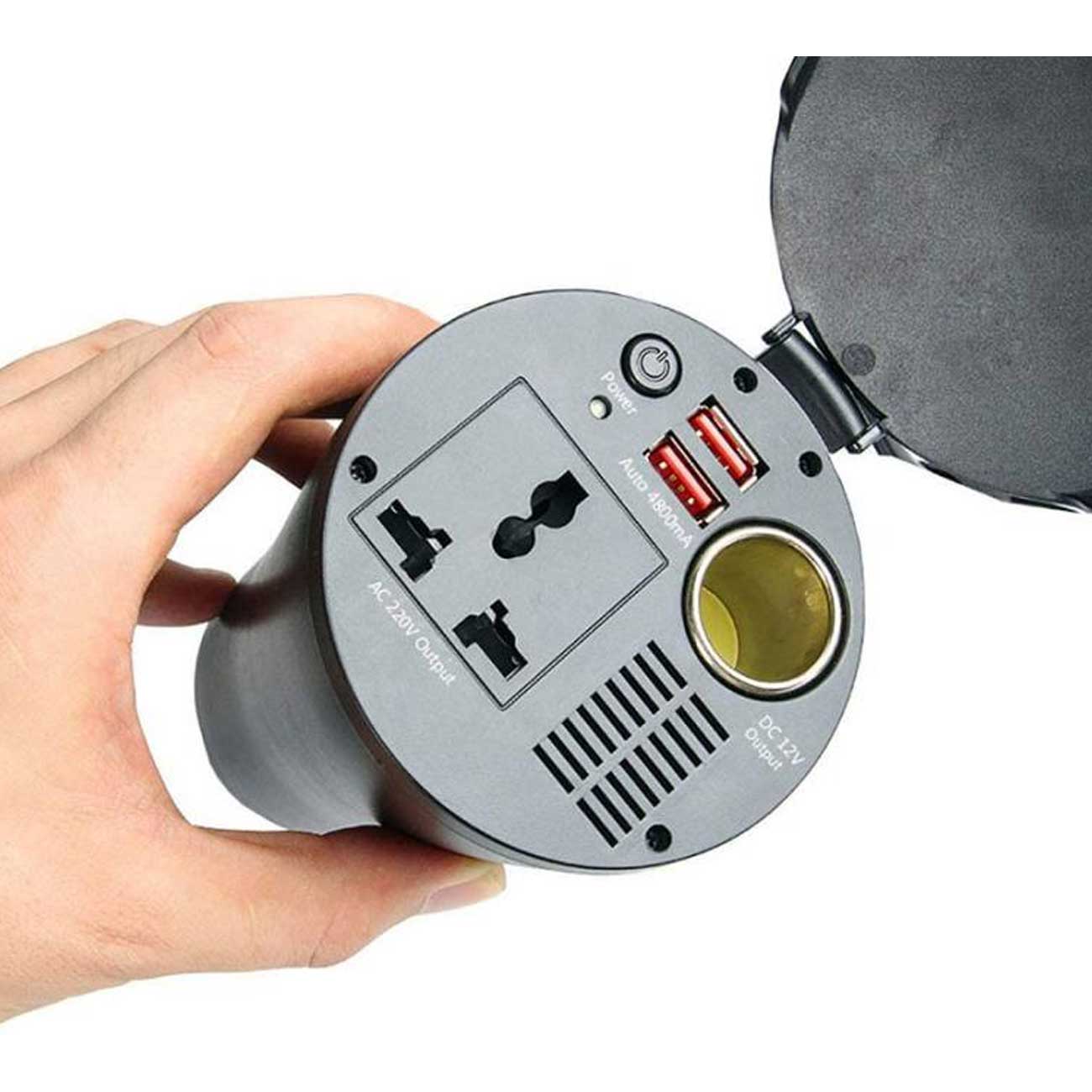 اینورتر خودرو 150 وات به صورت استوانهایطراحی شده؛ دارای درپوشی برای محافظت از درگاهها و سوکت برق است؛ از مواد باکیفیت ساخته شده و در برابر آسیب و دمای بالا بسیار مقاوم عمل میکند. ابعادی جمعوجور دارد و حمل و ذخیرهسازی آسانی دارد. پریز برقی که برای آن در نظر گرفته شده از انواع دو شاخه پشتیبانی میکند. با استفاده از یک کابل به جایگاه شارژر فندکی خودرو متصل میشود و با استفاده از کلید پاور میتوانید روشن و خاموش کنید.