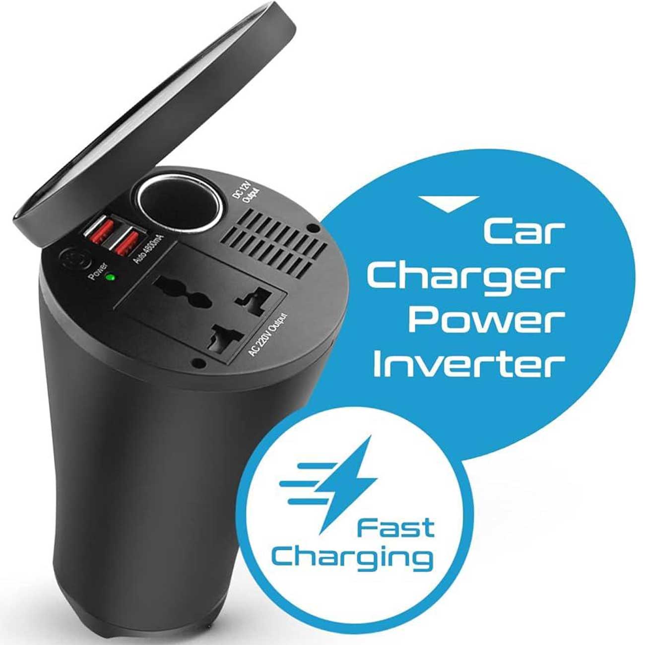 یکی از نمونههای آن با عنوان اینورتر و شارژر فندکی جالیوانی ماشین 150 وات در سایت فانی کالا موجود است که با تبدیل برق 12V DC به AC 220V امکان خروجی دادن 110 وات شارژ انواع گوشی موبایل، پاوربانک و باتری لپ تاپ و سایر گجت ها را فراهم کرده است.