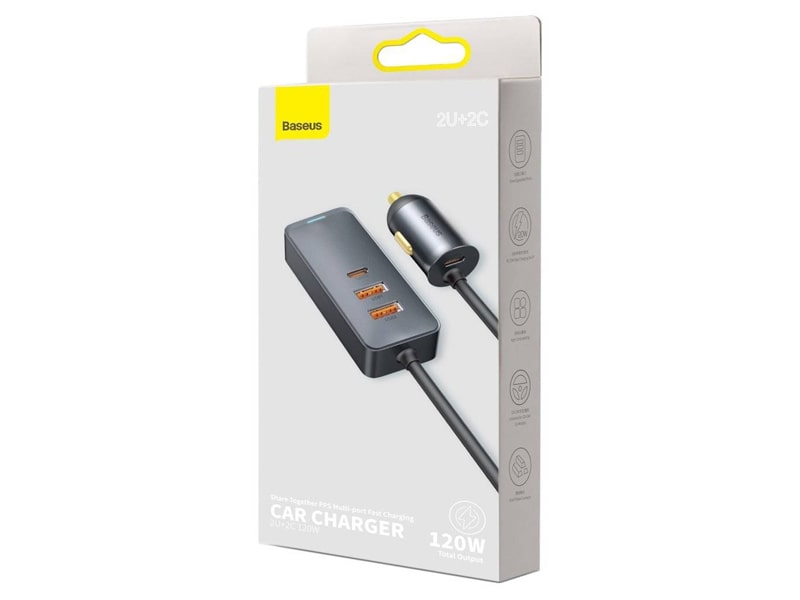شارژر فندکی 4 پورت Baseus CCBT-A0G Share Together PPS Multi-Port Fast Charging Car Charger With Extension Cord 120W CCBX-120C2