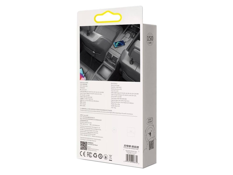 بدنه شارژر Baseus Share Together 2U+2C 120W از جنس PC (پلی کربنات) و آلیاژ آلومینیوم است که مقاومت خوبی را برای بدنه ایجاد کرده است. به این صورت میتوانید با خیالی راحتتر از آن استفاده کنید. قسمت فندکی دارای ابعادی 39×22.3 میلی متری و قسمت اکستنشن هم دارای ابعادی 31.5×72 میلی متری است که به کمک یک کابل 1.5 متری به هم وصل شدهاند.