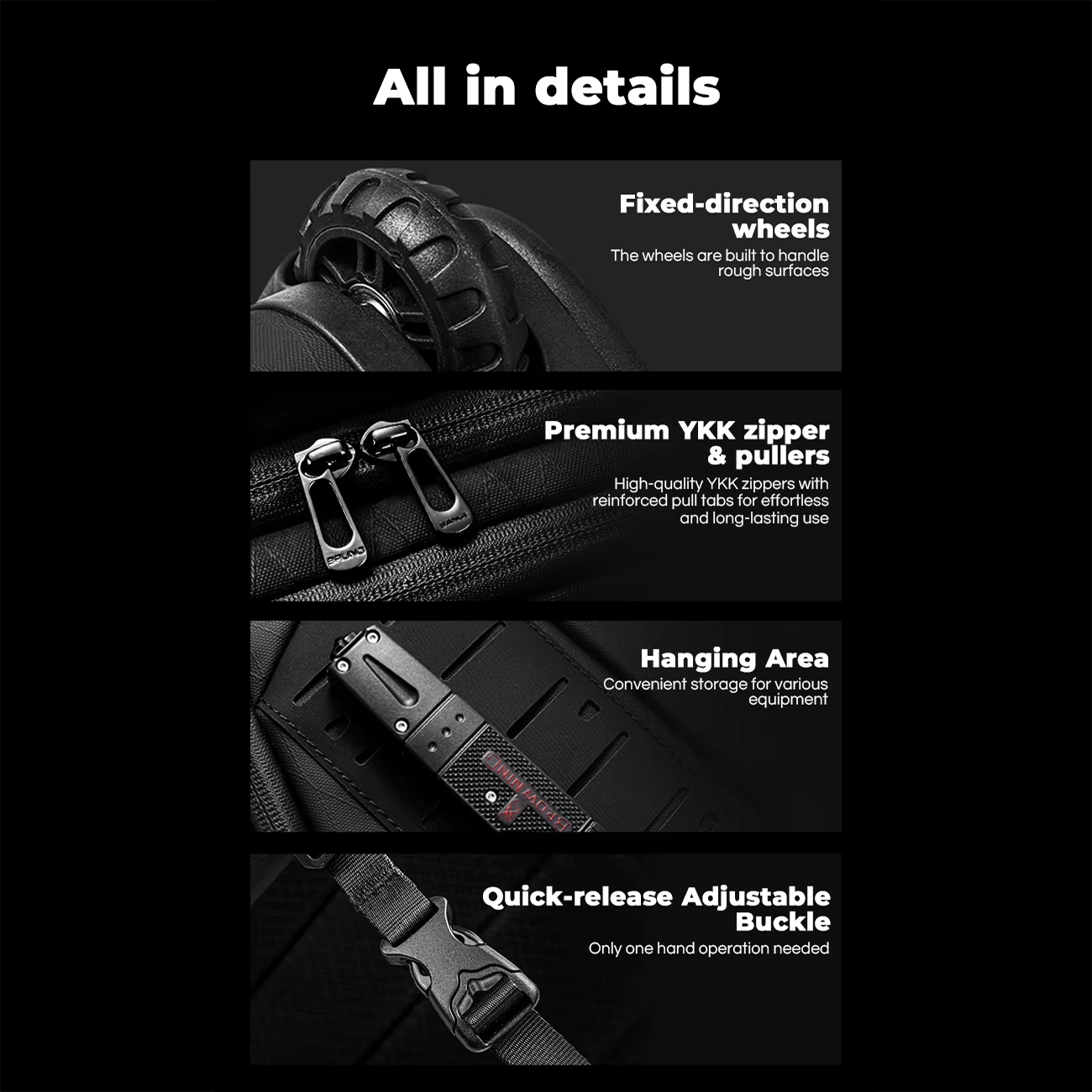 | سایر ویژگی ها | طراحی ترکیبی، عملکرد ۲ در ۱ / کوله پشتی و چمدان چرخ دار |