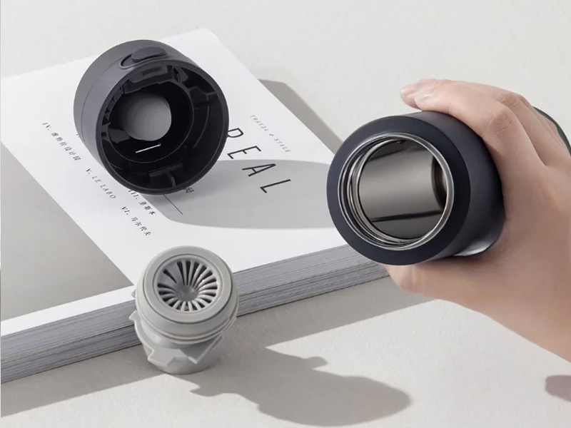 شیائومی برای درب قمقمه یک سوئیچ طراحی کرده که اگر دکمه سوئیچ را فشار داده و نگه دارید و آن را به سمت چپ فشار دهید درپوش به راحتی با یک دست باز میشود. شما میتوانید از قمقمه در حین حرکت و هنگام ورزش، خارج از منزل و حتی حین رانندگی به راحتی و با یک دست استفاده نمایید.