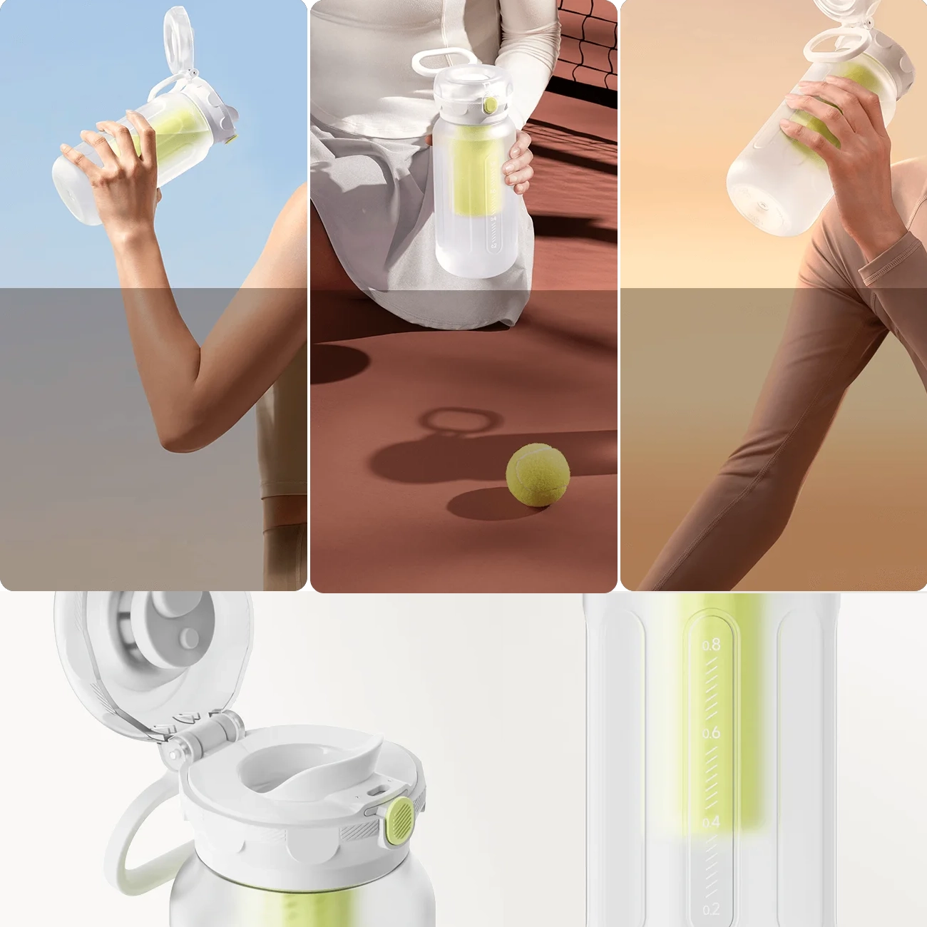 قمقمه ورزشی شیائومی مجهز به یک صافی داخلی است که به شما امکان اضافه کردن میوه و نوشیدن چای را میدهد. به لطف فیلتر ریزی که داخل آن است نوشیدنی شما بدون ذرات میوه و چای، همیشه شفاف باقی میماند.
