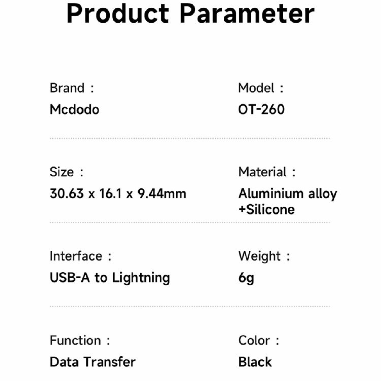 Mcdodo OT-2600 USB-A to Lightning Adapter with Silicone Hook