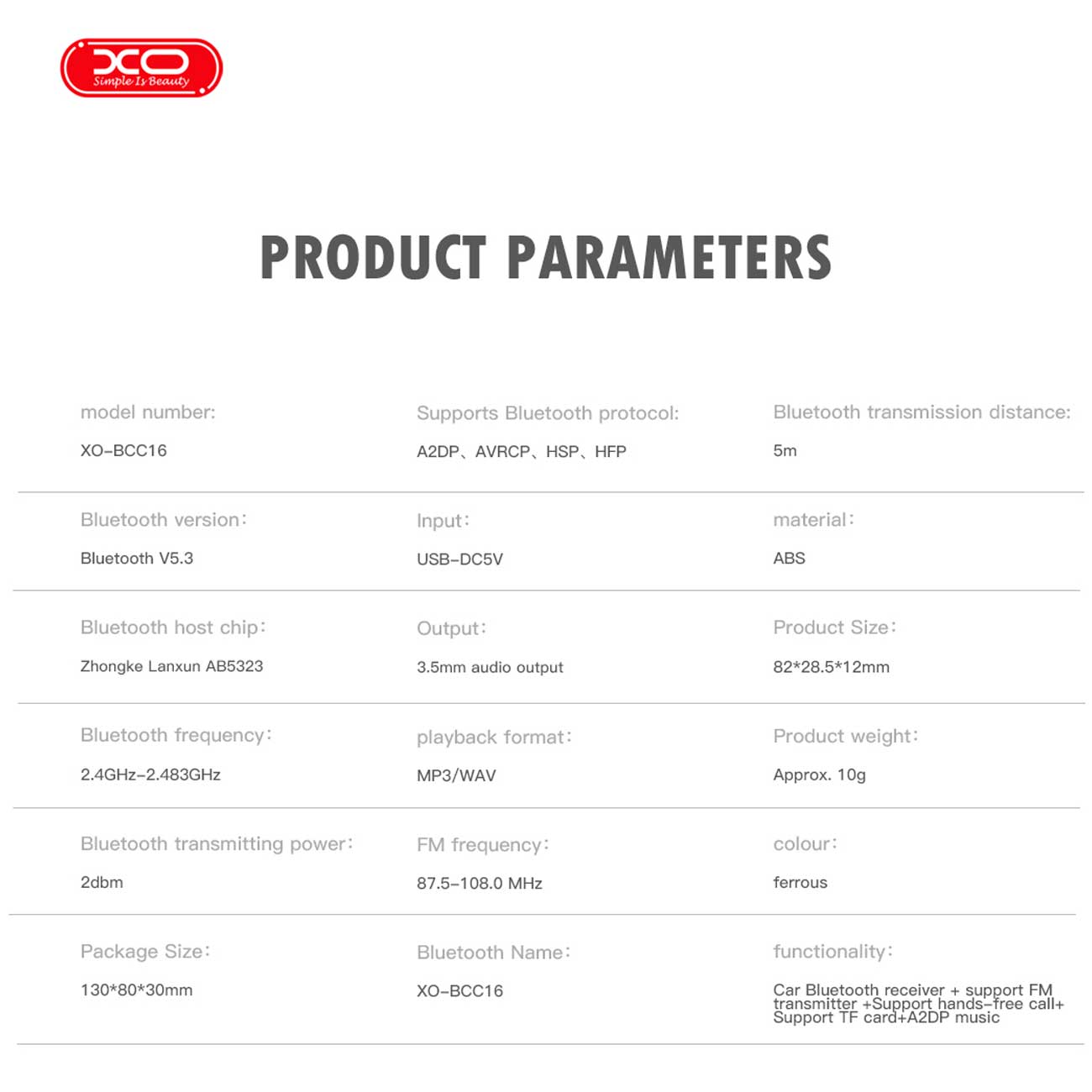 XO transmitter FM BCC16 Bluetooth MP3 USB