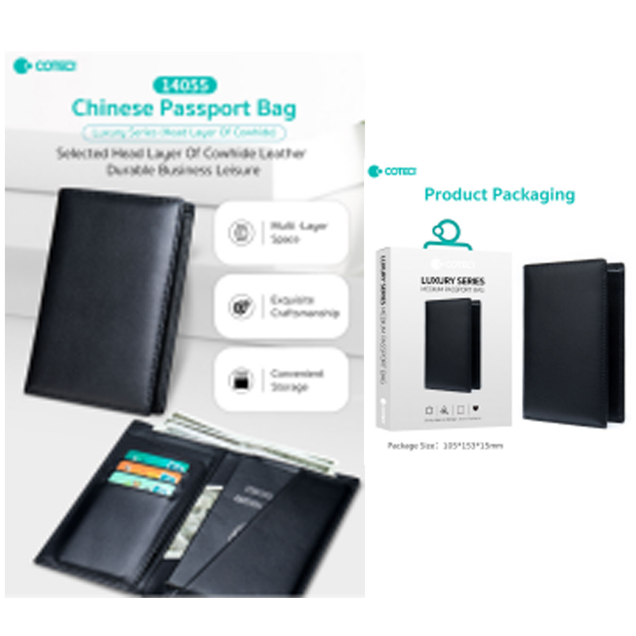 Coteci Luxury Series(Head Layer Of Cowhide)Mid-Style Passport bag 14055
