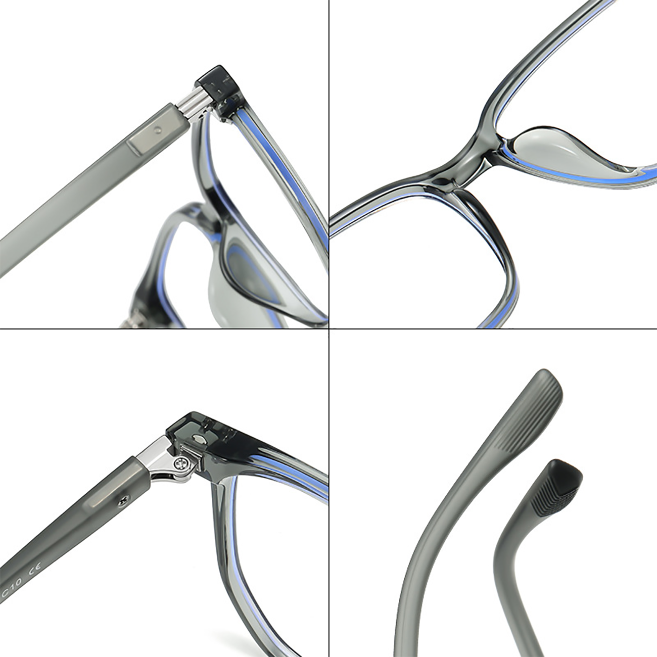 جنس فریم عینک از TR90 است؛ مادهای سبک، انعطافپذیر و مقاوم که در صنعت عینکسازی حرفهای بهعنوان یکی از بهترین متریالها شناخته میشود. این فریم علاوه بر مقاومت بالا در برابر فشار و ضربه، بهگونهای طراحی شده که هنگام استفاده طولانیمدت هیچگونه سنگینی یا ناراحتی روی صورت ایجاد نمیکند.