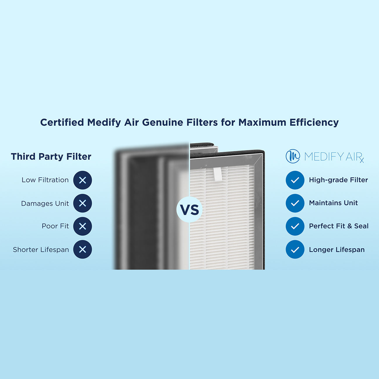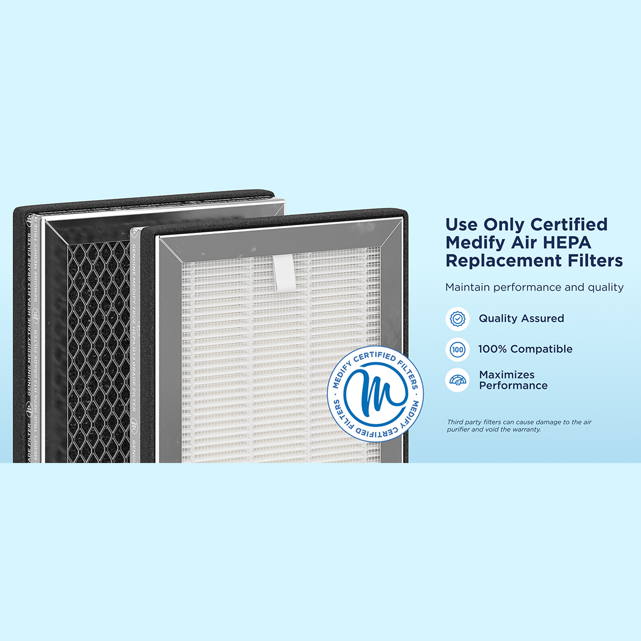 فیلتر HEPA مدیفای توانایی حذف 99.97% ذرات معلق در هوا با اندازه 0.1 تا 0.3 میکرون را دارد و بهصورت تخصصی برای تصفیه گرد و غبار، گرده گیاهان، شوره حیوانات، الیاف ریز و سایر آلرژنها طراحی شده است.