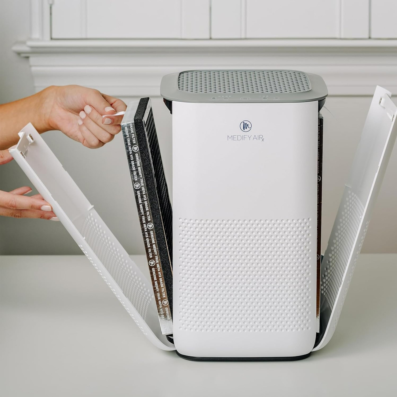 ابعاد مناسب حدود 19 × 19 × 31 سانتیمتر MA-15 WHT Medify با ارتفاع حدود 31 سانتیمتر و طراحی مینیمال، جایگیری آسان در فضاهای مختلف را ممکن کرده است. پنل کنترل لمسی، کار با دستگاه را سریع و بدون پیچیدگی میکند. نشانگر تعویض فیلتر نیز زمان مناسب برای جایگزینی فیلتر را اعلام میکند تا عملکرد دستگاه همیشه در سطح استاندارد باقی بماند.