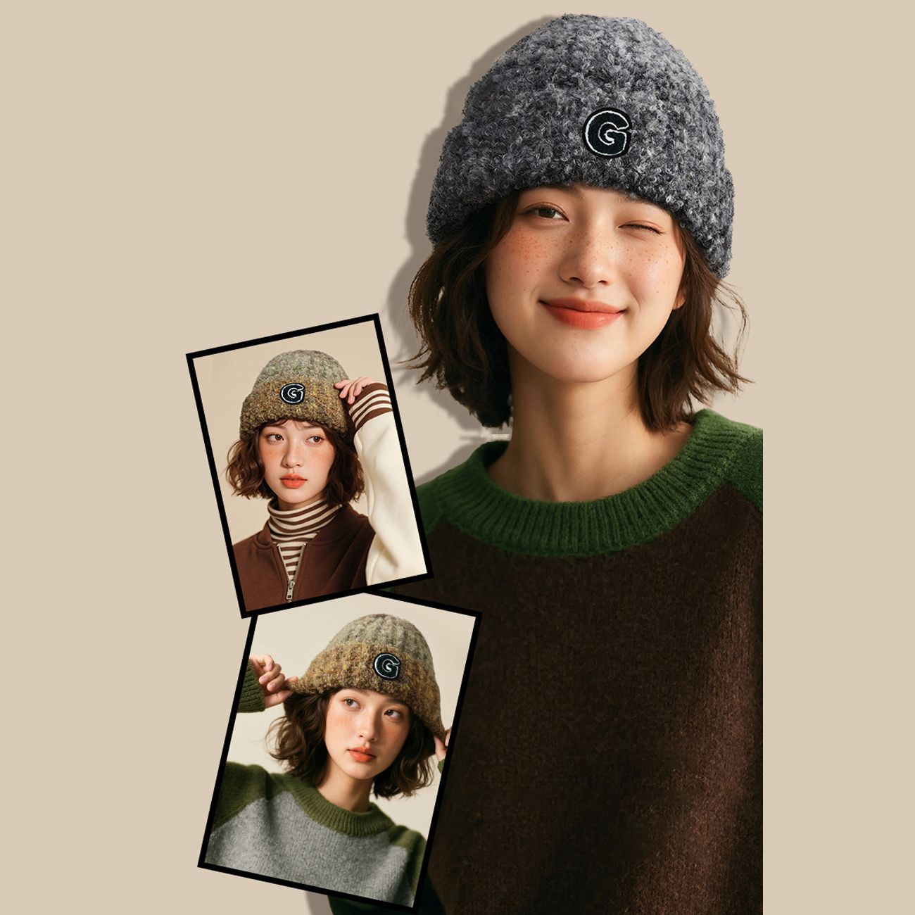 GD DMZ133 knitted hat with soft wool blend, warm and comfortable for autumn and winter
